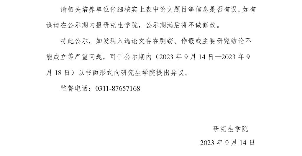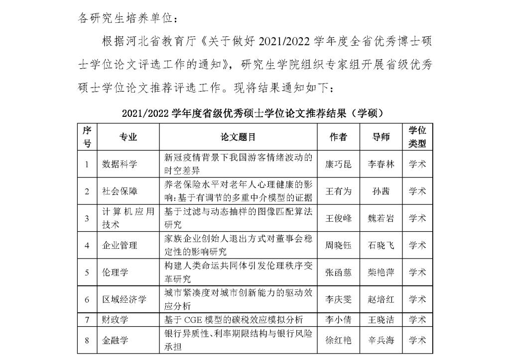 关于2021/2022学年度省级优秀硕士学位论文推荐结果的公示