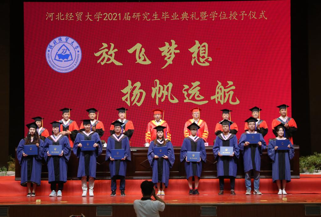 刘建平宣读了《fun88乐天使学位评定委员会关于授予2021届硕士研究生硕士学位的决议》。学位授予仪式上,校领导为毕业生代表一一拨苏正冠,授予学位证书。