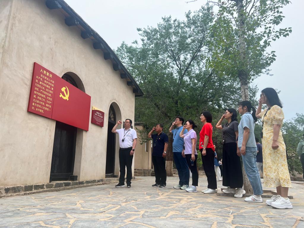 在中共中央旧址,大家先后参观了毛泽东等领导人旧居、军委作战室、中国共产党七届二中全会会址等,近距离感受到老一辈无产阶级革命家在西柏坡时期艰苦卓绝的奋斗历程。在七届二中全会会场旧址前,全体党员集体宣誓,重温入党誓词,砥砺初心使命。